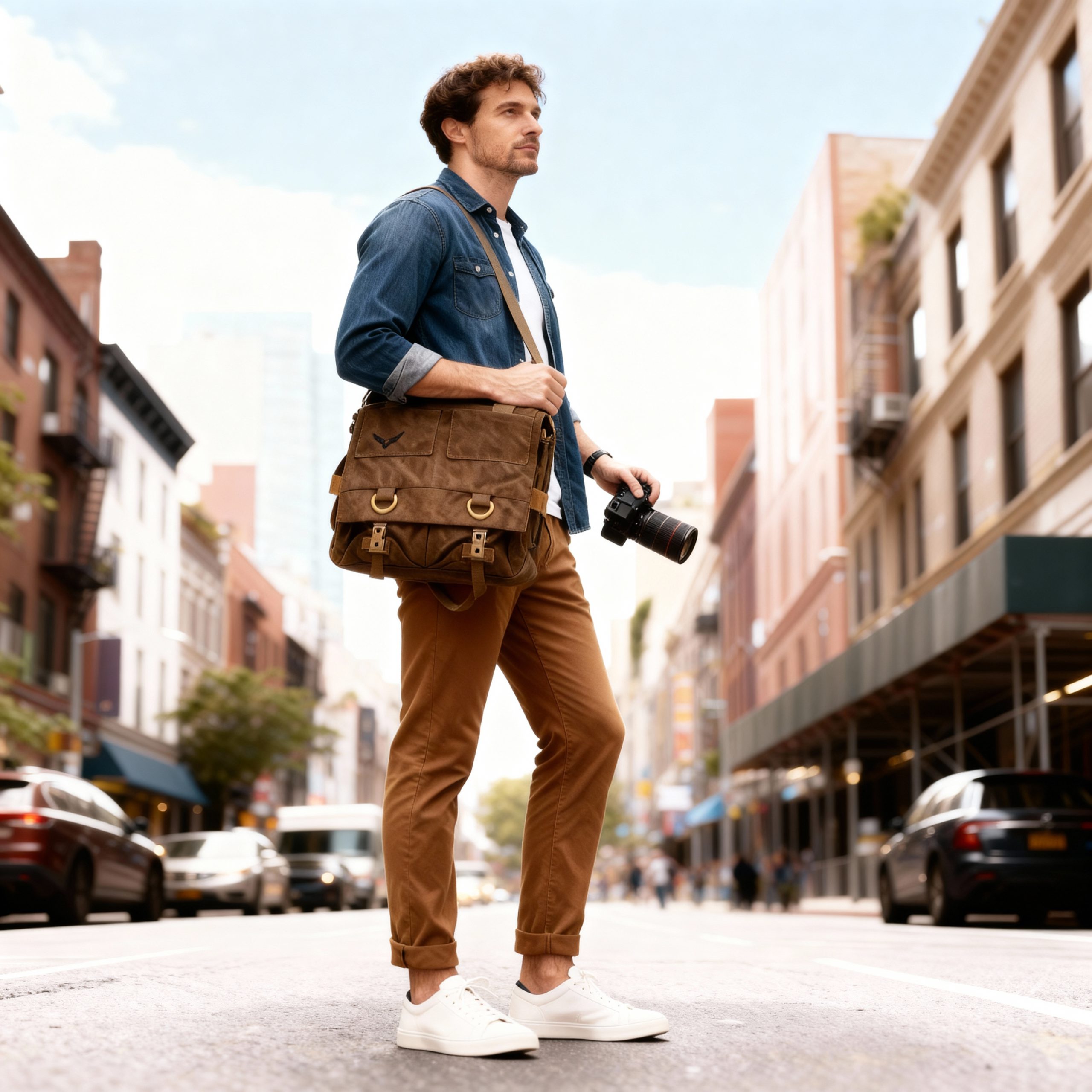Mann-mit-Gleann-Bag-L-auf Straße