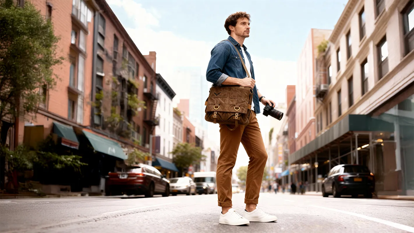 Mann-mit-Gleann-Bag-L-auf Straße_16 zu9
